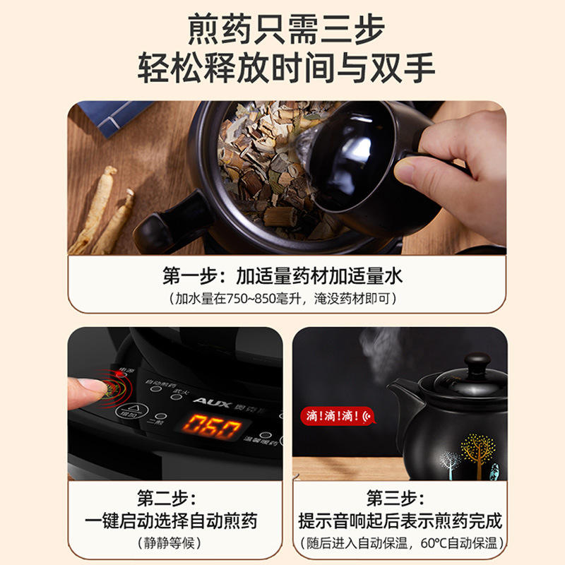 หม้อต้มสมุนไพรไฟฟ้า AUX ขนาด 3-4 ลิตร เซรามิก ปิดอัตโนมัติ สำหรับการใช้งานสมุนไพรจีนแบบดั้งเดิมที่บ้าน