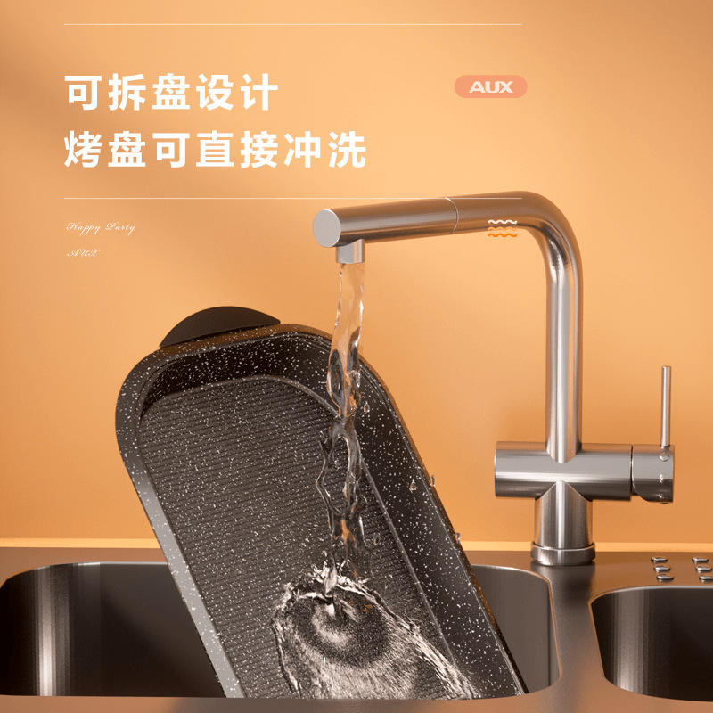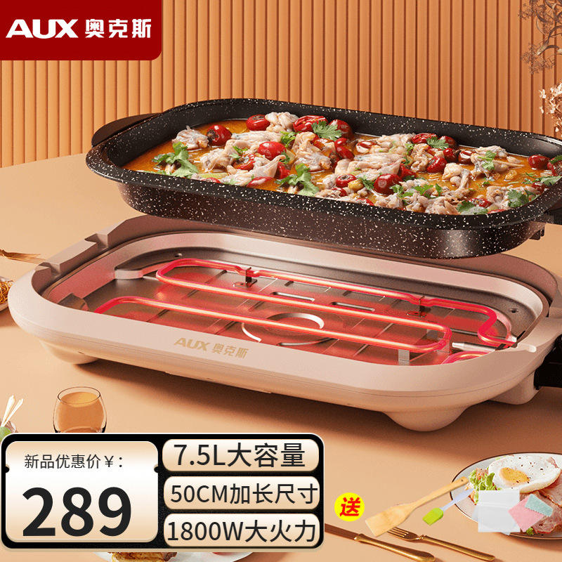 เตาไฟฟ้า AUX สำหรับย่างปลา 6 ลิตร พร้อมถาดอบแบบแบน 1501W-2000W ทำความสะอาดง่าย เหมาะสำหรับใช้ในบ้าน