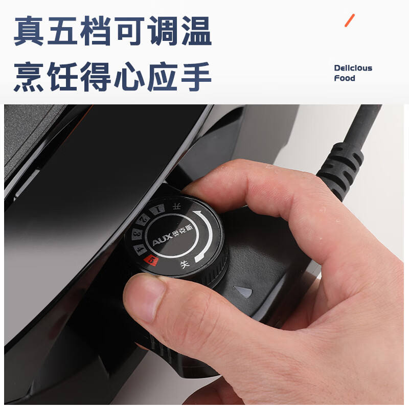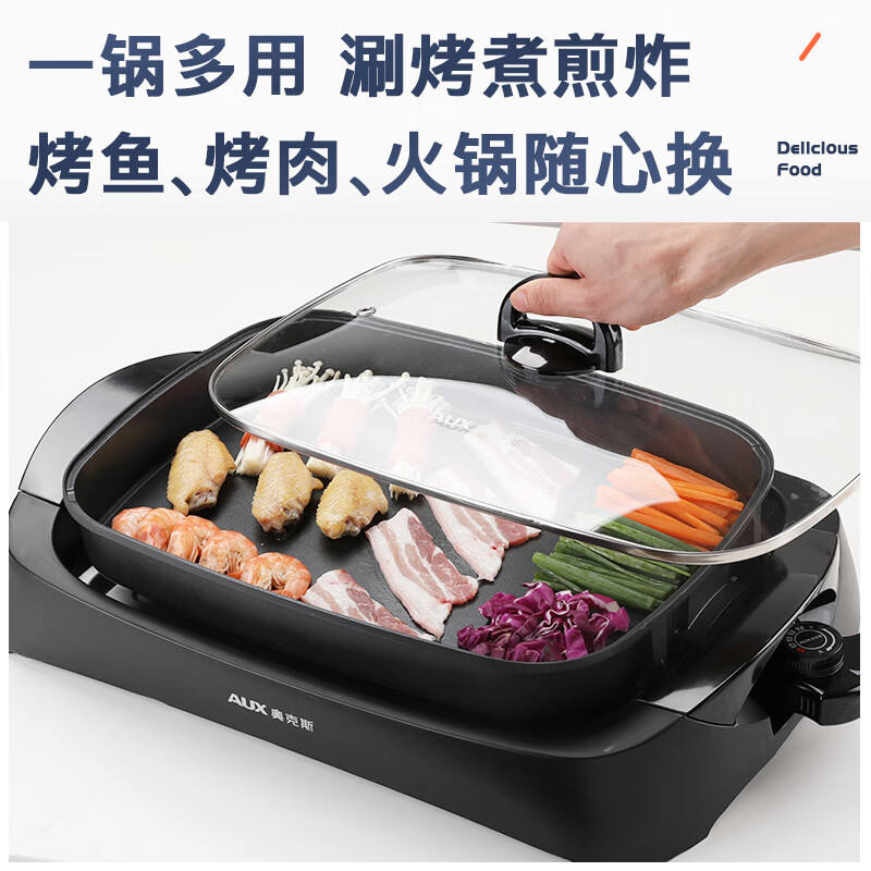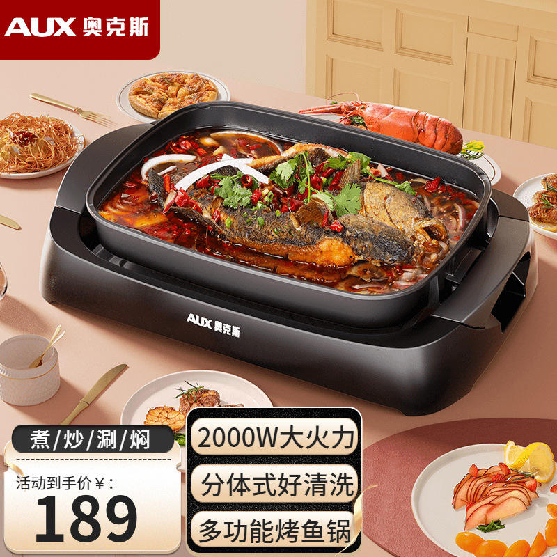 เตาปิ้งย่างไฟฟ้า AUX 5 ลิตร แบบไม่ติดกระทะ ไร้ควัน พร้อมถาดรองน้ำมันแบบถอดได้ แผ่นย่างแบบลูกฟูก 1501W-2000W หม้อปิ้งปลา