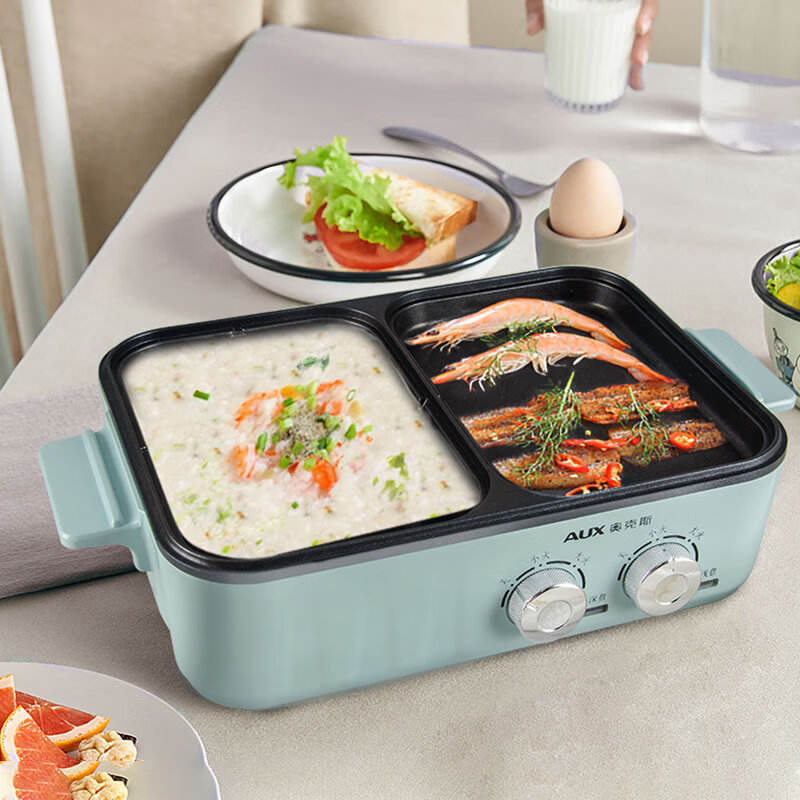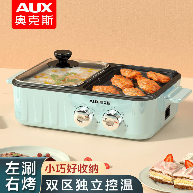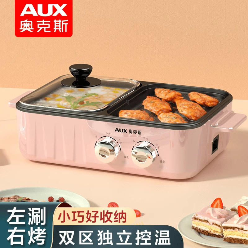 เตาปิ้งย่างไฟฟ้า AUX และหม้อไฟฟ้าแบบสองโซน ควบคุมอุณหภูมิแยกอิสระ หม้อด้านในเคลือบสารกันติด สำหรับใช้ในบ้าน