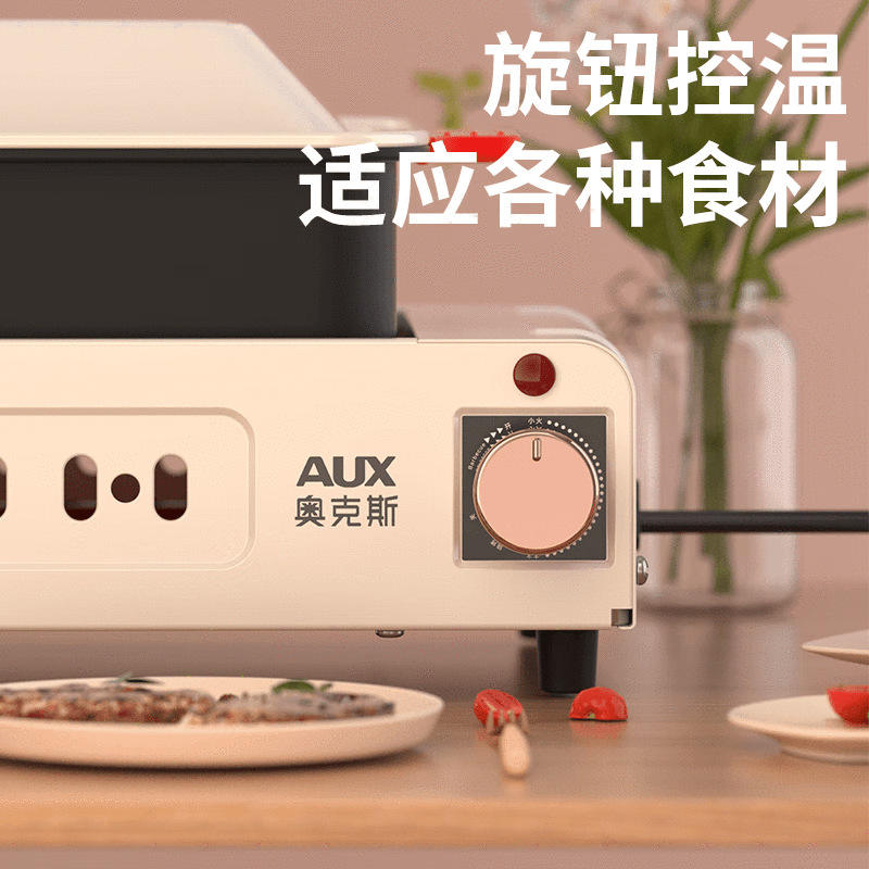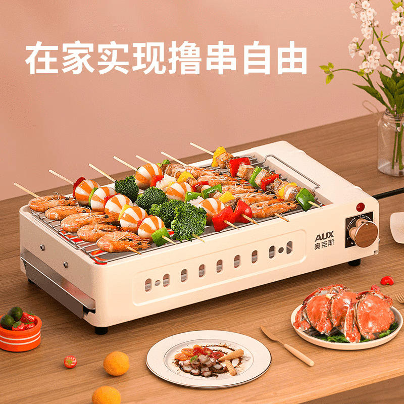 เตาย่างไฟฟ้า AUX แบบสองชั้น สเตนเลสสตีล ไม่ติดกระทะ ใช้ได้ทั้งในบ้านและนอกบ้าน