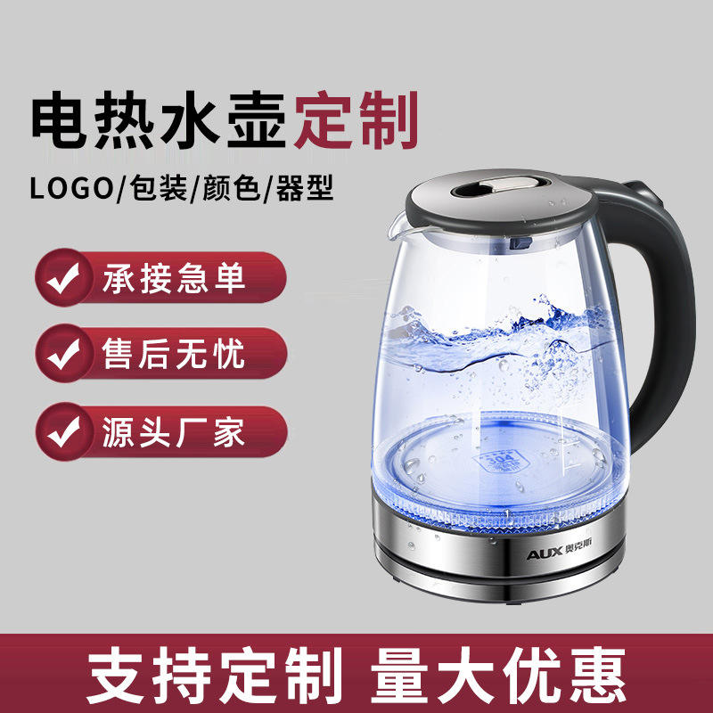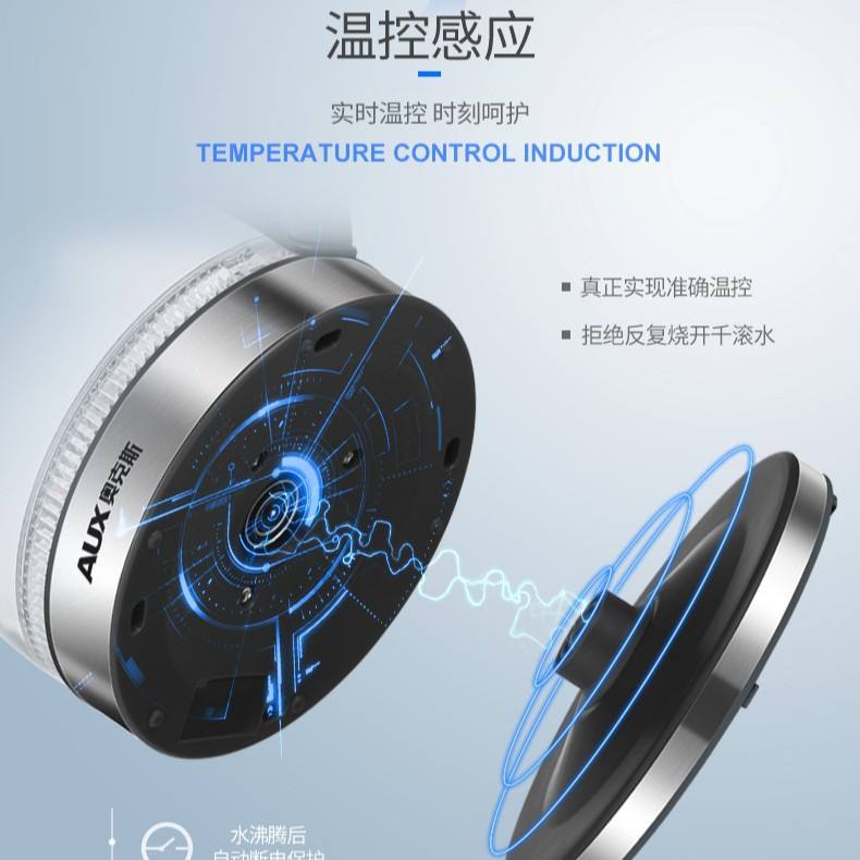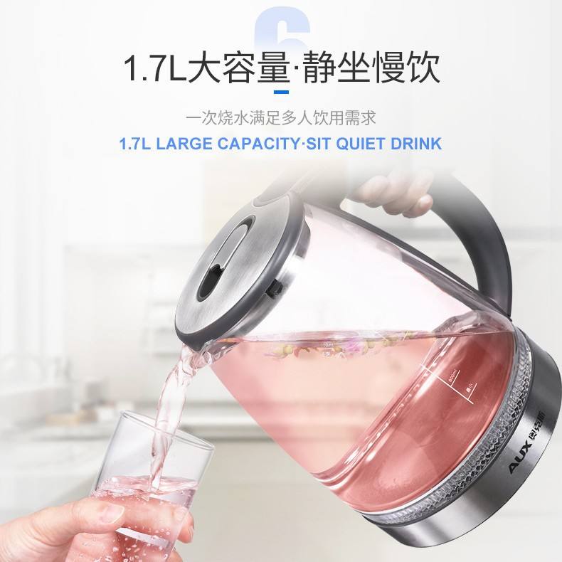 กาต้มน้ำไฟฟ้า AUX ตัวเครื่องทำจากแก้ว ความจุ 1.7 ลิตร ร้อนเร็ว ปิดอัตโนมัติ พร้อมหน้าจอ LED สำหรับใช้ในบ้านและสำนักงาน