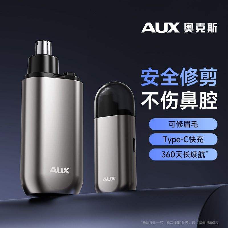 เครื่องตัดขนจมูกไฟฟ้า AUX สีเงินมูนไลท์ ชาร์จผ่าน USB ล้างทำความสะอาดได้ทั้งตัว อุปกรณ์กรูมมิ่งสำหรับผู้ชาย