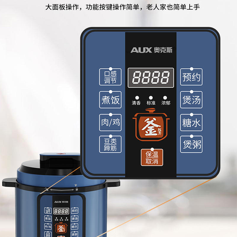 หม้อหุงข้าวไฟฟ้า AUX ขนาด 6.1-8.0 ลิตร หม้อหุงข้าวอเนกประสงค์แบบไม่ติดกระทะพร้อมตัวตั้งเวลาอัจฉริยะ