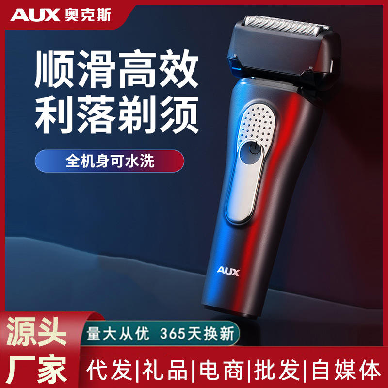 เครื่องโกนหนวดไฟฟ้า AUX แบบชาร์จไฟได้ ล้างทำความสะอาดได้เต็มที่ กันน้ำ IPX7 สำหรับใบหน้า