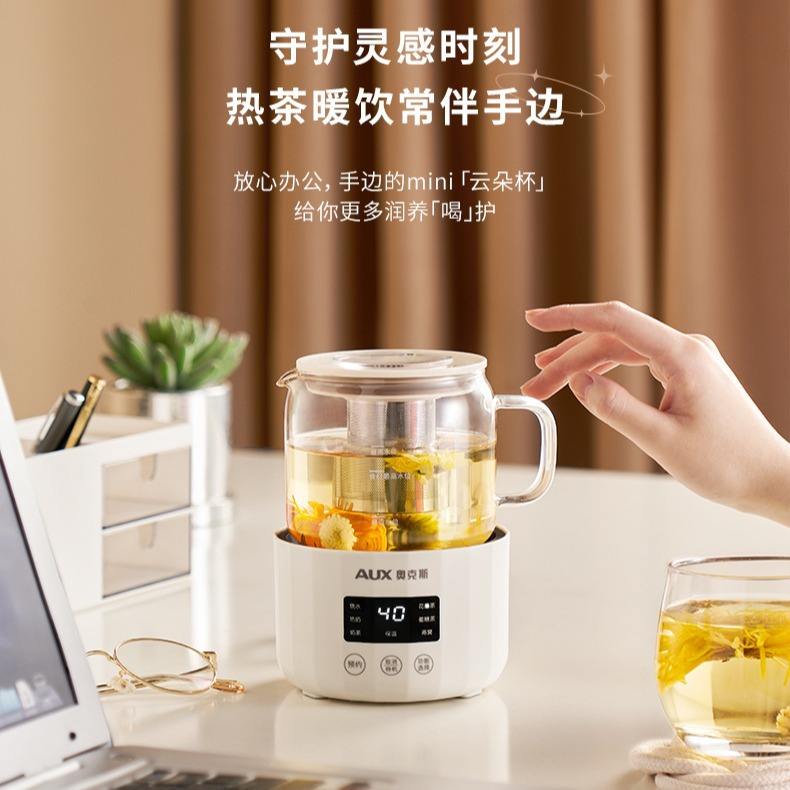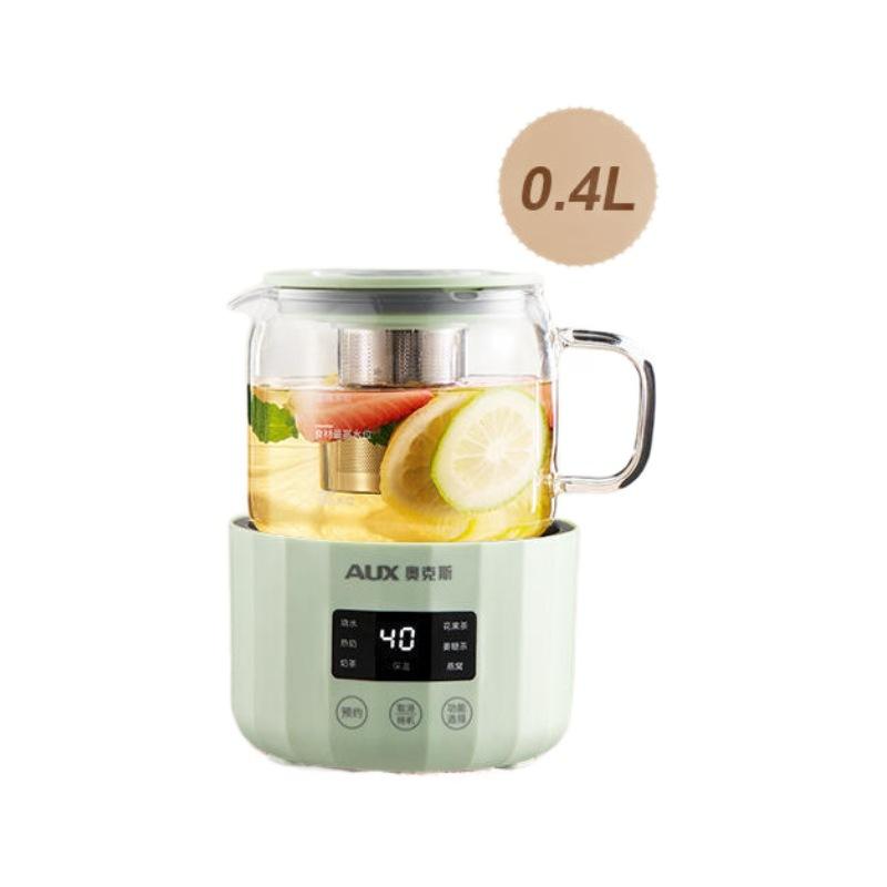หม้อสุขภาพ AUX ขนาด 0.4 ลิตร แก้วตุ๋นไฟฟ้าขนาดเล็ก สำหรับใช้ในสำนักงาน เครื่องชงชาอัตโนมัติเต็มรูปแบบ สีขาวนวลและสีเขียวกระวาน