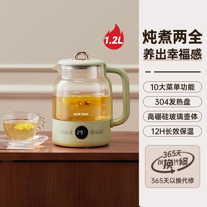 หม้อต้มน้ำไฟฟ้า AUX Health Pot ขนาด 1.5 ลิตร ควบคุมอุณหภูมิ ปิดอัตโนมัติ พร้อมฟังก์ชั่นหลากหลายสำหรับชงชาและตุ๋นอาหาร