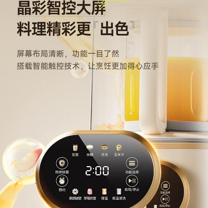 เครื่องปั่นความเร็วสูง AUX ความจุขนาดใหญ่ 1.75 ลิตร ป้องกันแบคทีเรีย ทำงานเงียบ ผลิตเครื่องดื่มนมถั่วเหลืองอัตโนมัติเต็มรูปแบบ