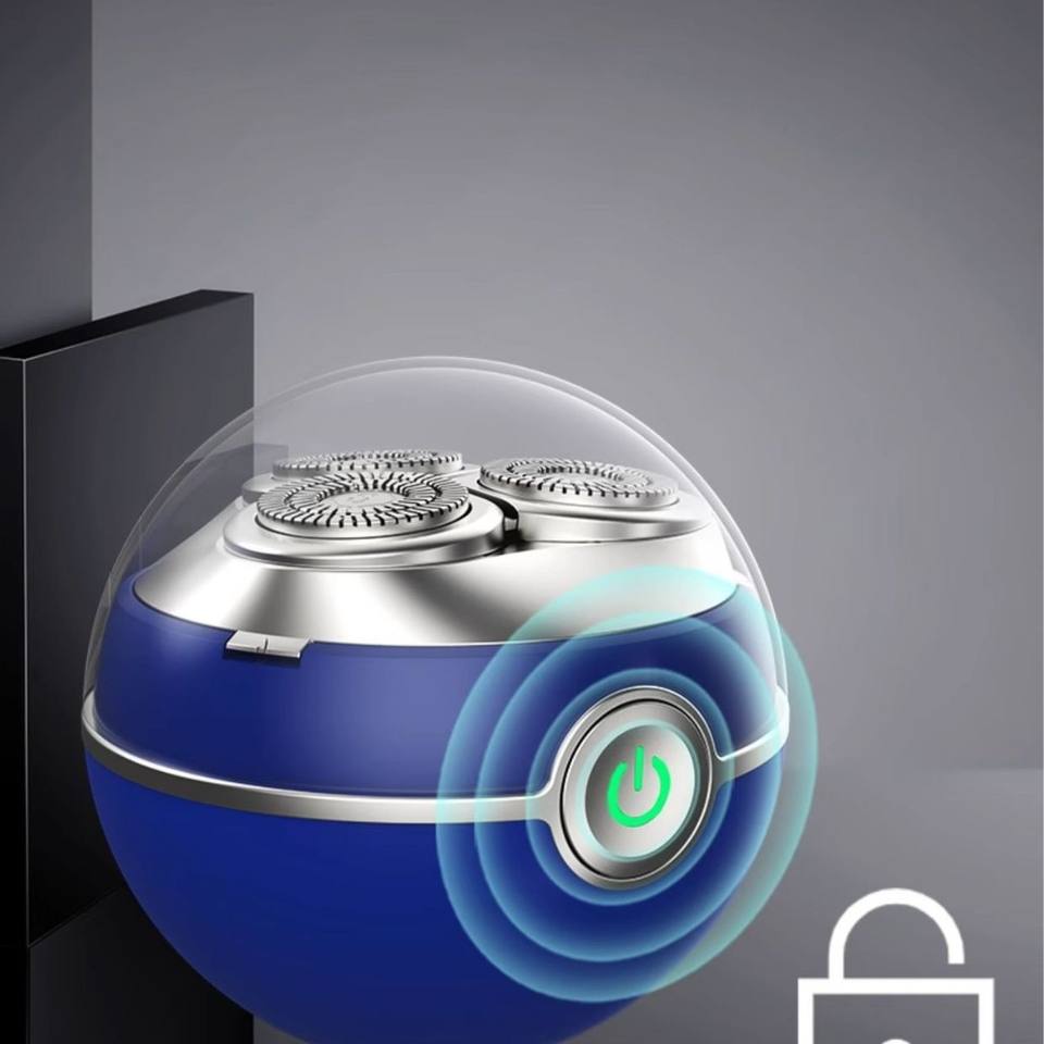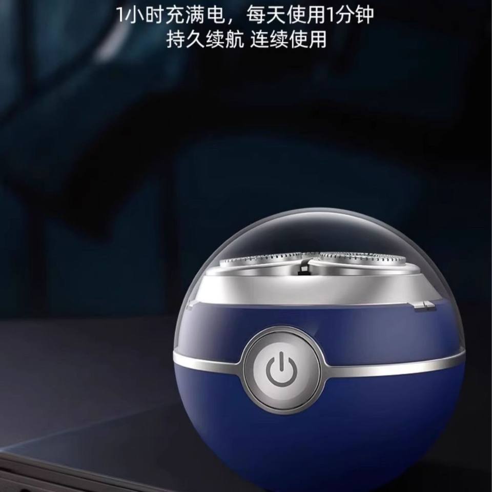 เครื่องโกนหนวดไฟฟ้าสำหรับผู้ชาย AUX แบบพกพาขนาดเล็ก ชาร์จซ้ำได้ ใบมีดคู่ กันน้ำ IPX7 สีฟ้าประกายดาว พร้อมกล่องของขวัญ