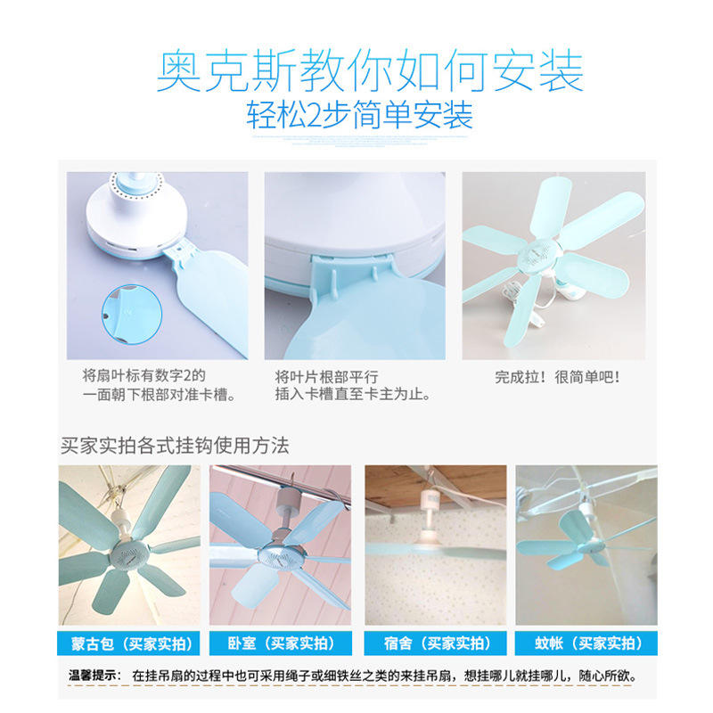 เลือกเลยcolor: พัดลมเพดานขนาดเล็ก 6 ใบพัด พร้อมรีโมทคอนโทรล สายไฟ และขายึดพัดลมเพดาน