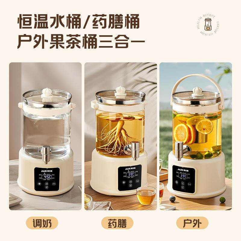 หม้อต้มอัจฉริยะ AUX ขนาด 2-3 ลิตร ควบคุมอุณหภูมิคงที่ พร้อมก๊อกน้ำ สำหรับชงชา ผลไม้ และไวน์