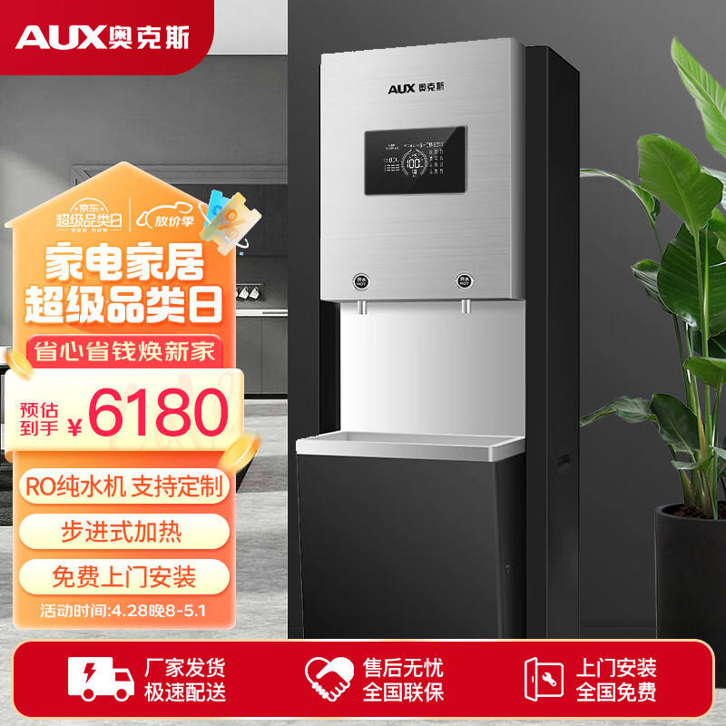 เครื่องกรองน้ำแบบตั้งพื้น AUX ระบบ Reverse Osmosis พร้อมระบบเตือนภัย วัสดุสแตนเลส สีดำ สำหรับใช้งานเชิงพาณิชย์