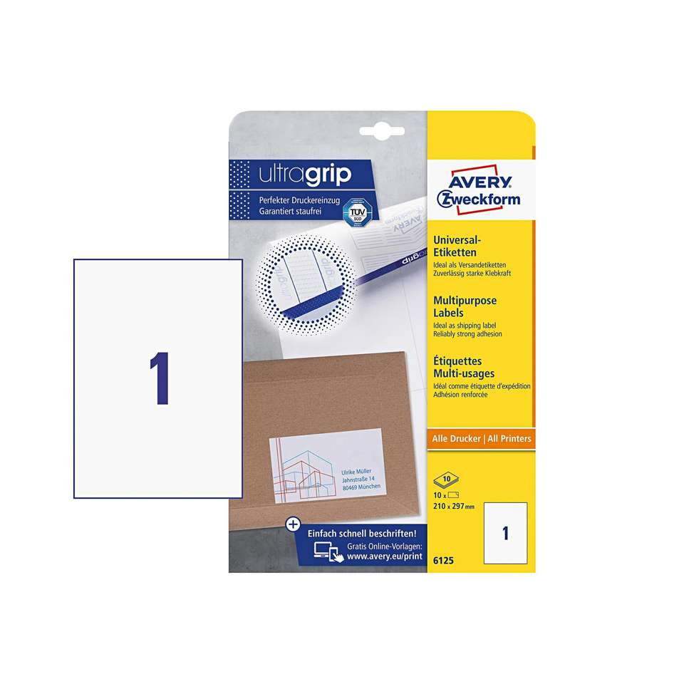 เอเวอรี่ zweckform ยูนิเวอร์แซล-etiketen 6125 210x297มม. weilex 10 stück