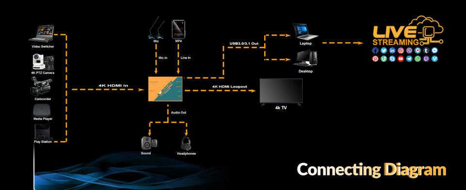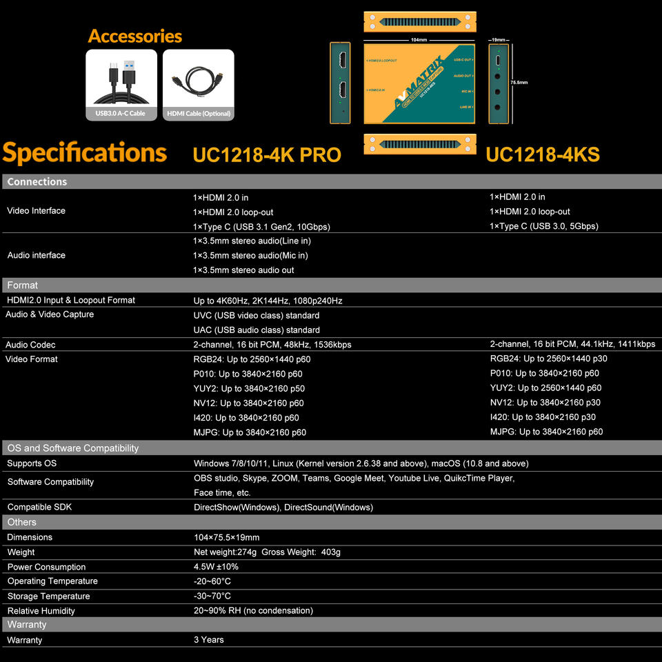 AVMATRIX UC1218-4KS 4K30 HDMI2.0 ไปยัง USB3.0 บันทึกสัญญาณ AV แบบไม่บีบอัด พร้อมช่องต่อไมค์สำหรับการสตรีมสด การเล่นเกม และการบันทึก