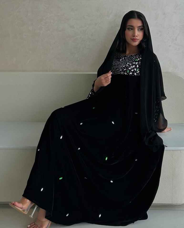 ชุดอาบายะแบบคาฟตันสำหรับงานแต่งงานและงานปาร์ตี้ แบรนด์ AWAIS HOUSE ดูไบ มุสลิม อิสลาม ไซส์พลัส ผ้ากำมะหยี่เนื้อดี ประดับเลื่อม งานแฮนด์เมด ชายกระโปรงบาน น้ำหนักเบา
