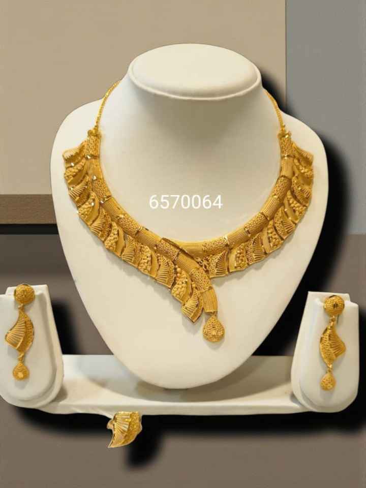 AWAIS HOUSE ชุดสร้อยคอและสร้อยข้อมือทองเหลืองชุบทองประดับเพชรสำหรับผู้หญิง 6 กรัม สร้อยคอ-งานแต่งงาน ของขวัญงานหมั้น เครื่องประดับ