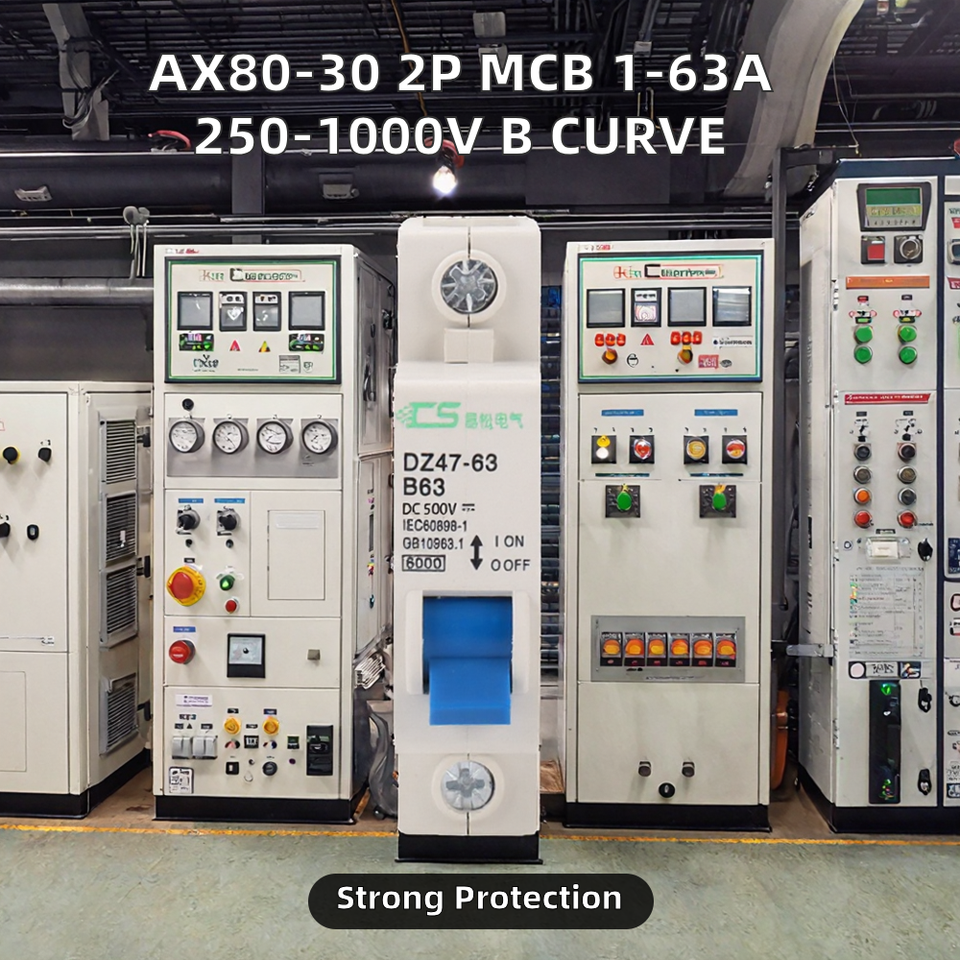 AX80-30เบรกเกอร์ขนาดเล็ก (MCB) 1-63A ทองแดง2ขั้ว AC 250V-1000V 4/5ka/6kA ความสามารถในการทำลายราง DIN สำหรับ B