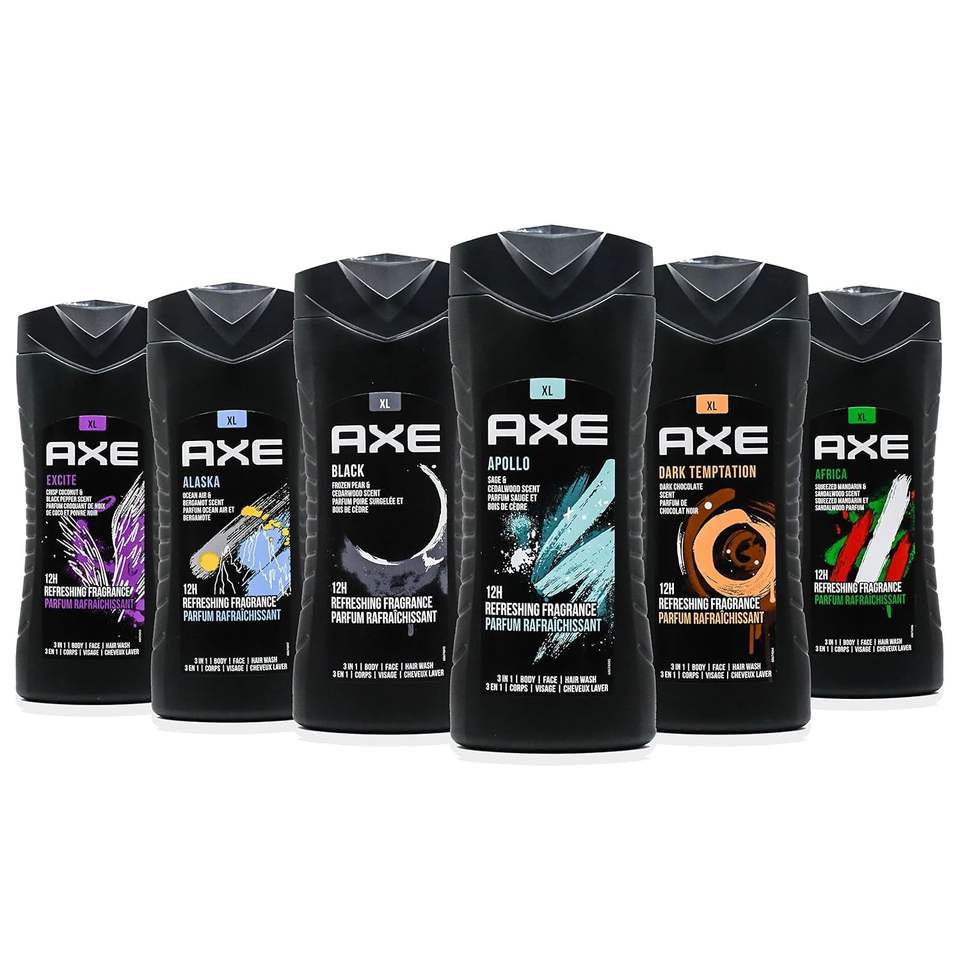 Axe Men's สบู่อาบน้ำ3-in-1, น้ำหอมสำหรับผู้ชายครีมล้างตัวหลากหลาย6กลิ่นสดชื่น12ชั่วโมง13.5หอม FL ounce (400มล.)