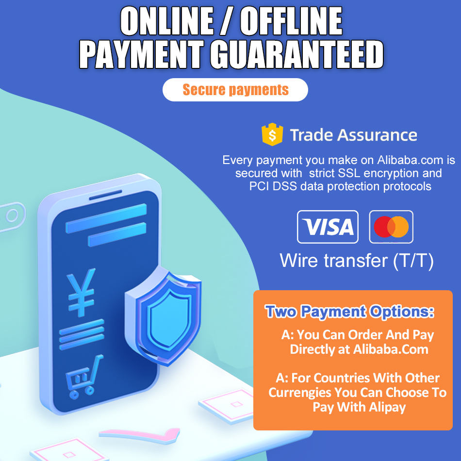 ทุกการชำระเงินที่คุณทำบน Alibaba.com มีความปลอดภัยด้วยการเข้ารหัส SSL และโปรโตคอลการป้องกันข้อมูล PCI DSS ที่เข้มงวด