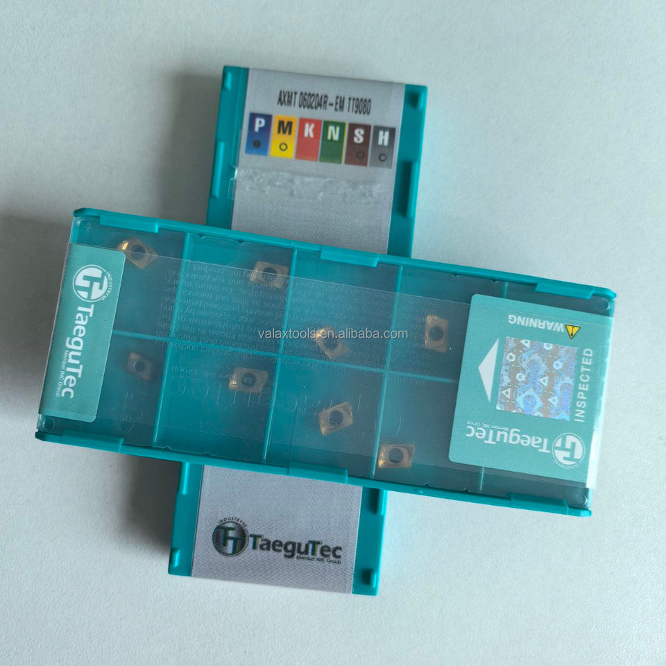 เม็ดมีดคาร์ไบด์ทังสเตนเคลือบ CVD แท้ รุ่น AXMT060204R-EM TT9080 ของ Taegutec สำหรับงานกลึงภายนอกด้วยเครื่องกลึง CNC