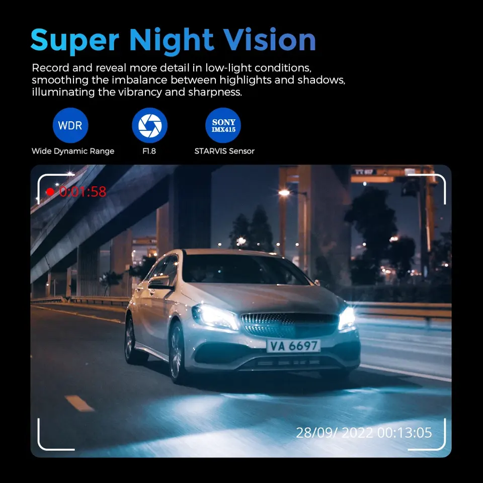 บลูทูธ, WDR, G-เซ็นเซอร์, Parkโหมด, การบันทึกLoop, Build-In WiFi, แอปควบคุม, Build-In GPSฟังก์ชัน