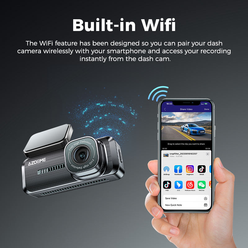 กล้องติดรถยนต์ AZDOME M200 ความละเอียด 1080P พร้อม WIFI ในตัว บันทึกภาพขณะจอดรถตลอด 24 ชั่วโมง