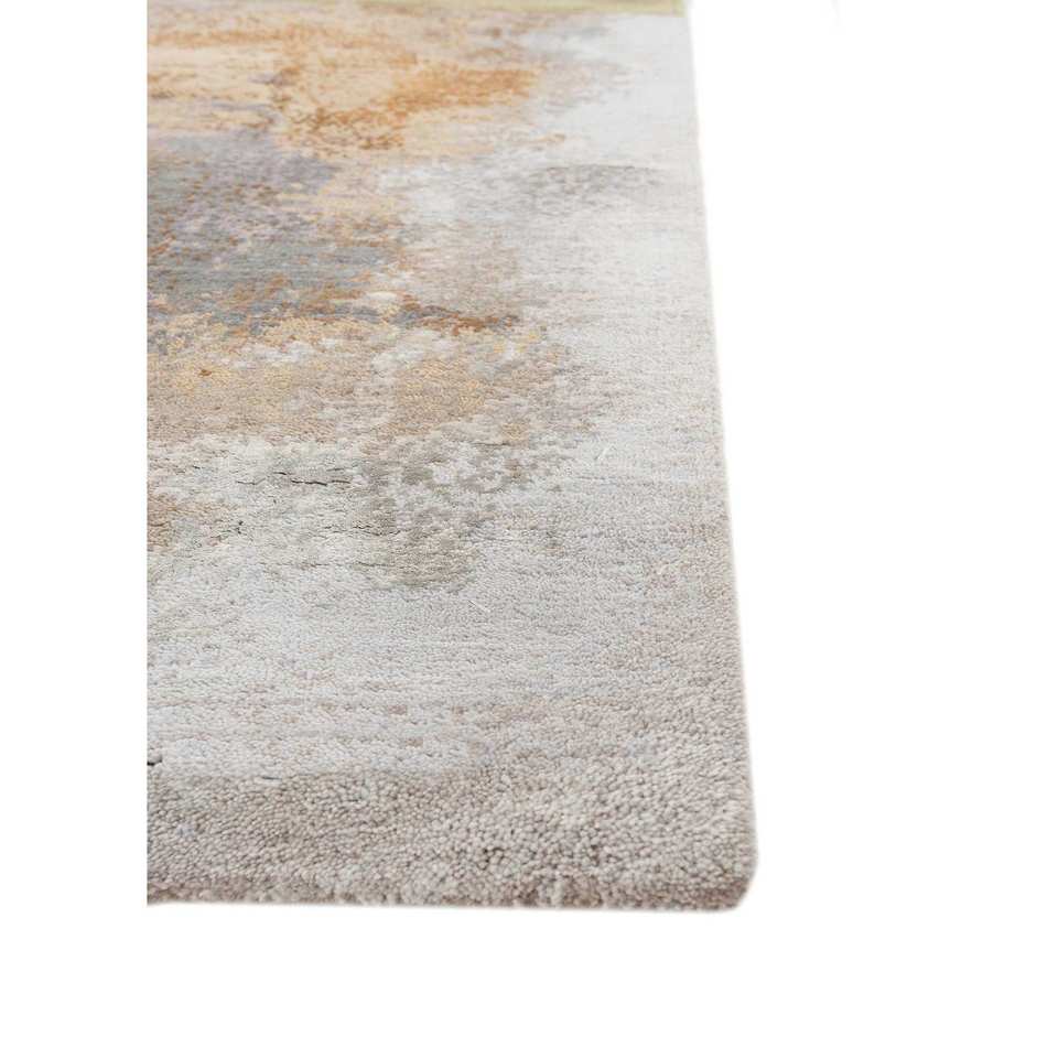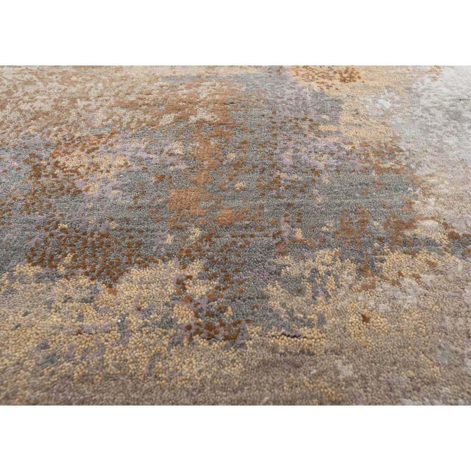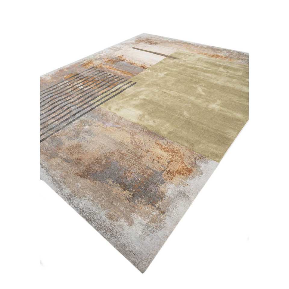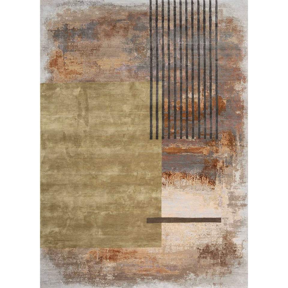 พรมไหมขนสัตว์ถักมือ Aakar Kavi En-369(3D) สีเทา-ดำ ลายแบบนามธรรม สำหรับบ้าน ห้องโถง พรมทอแบบแบน รูปทรงสี่เหลี่ยมผืนผ้า พรมปูพื้นห้อง