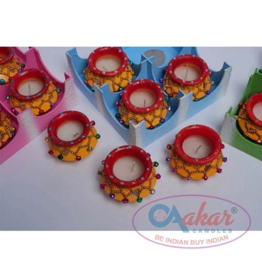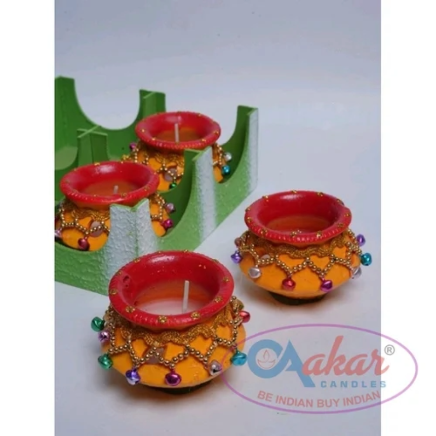 เทียนขี้ผึ้งดินเผา Aakar TC 105 Shubh Uphar สำหรับตกแต่งบ้าน วัด และงานเทศกาล