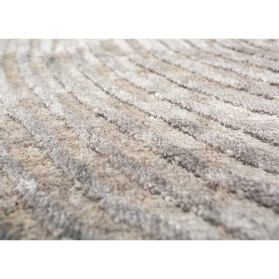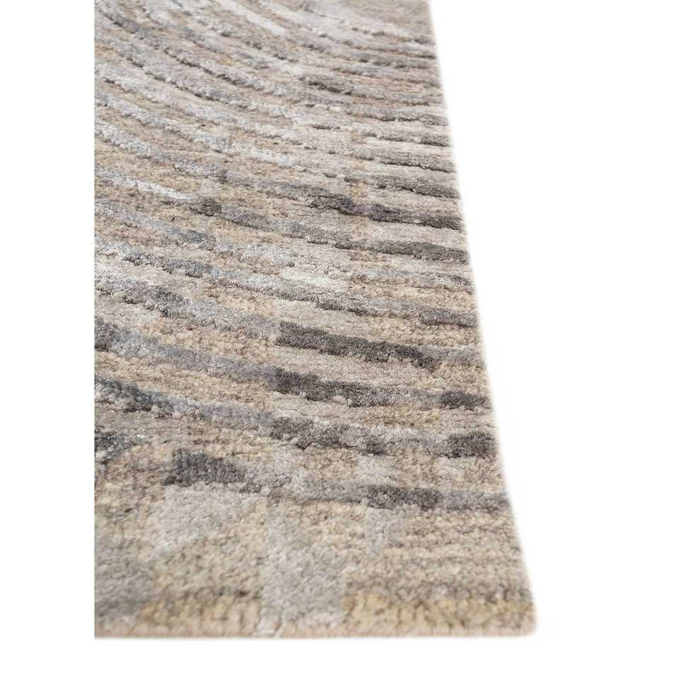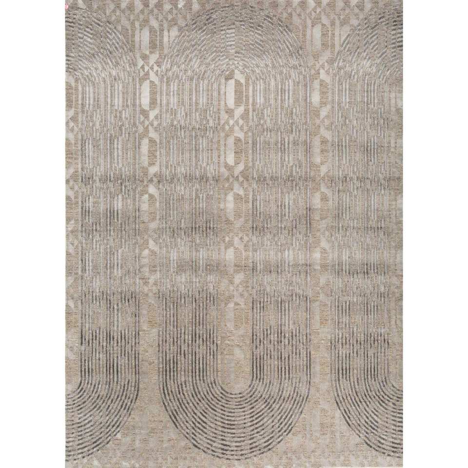 พรมถักมือ Aakar by Kavi สีเบจและสีน้ำตาล ทำจากขนสัตว์และไหมไผ่ ลายเรขาคณิต รูปทรงสี่เหลี่ยมผืนผ้า สำหรับห้องโถงหรือห้องพัก รุ่น Eskn-339