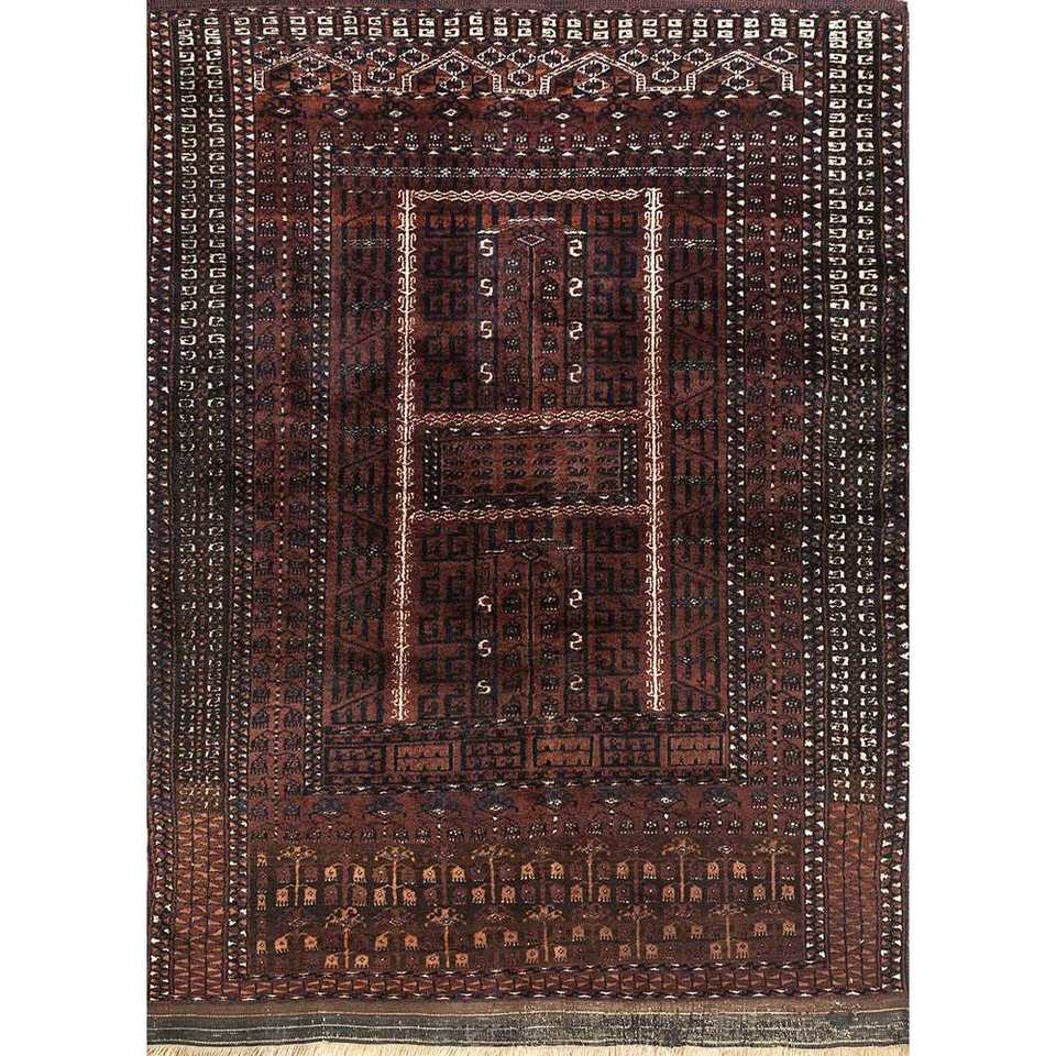พรมขนสัตว์ถักมือสีเบจและสีน้ำตาลลายเรขาคณิตสำหรับห้องนั่งเล่น ใช้สำหรับละหมาดและทางเดิน ขนาดใหญ่-Paem-409