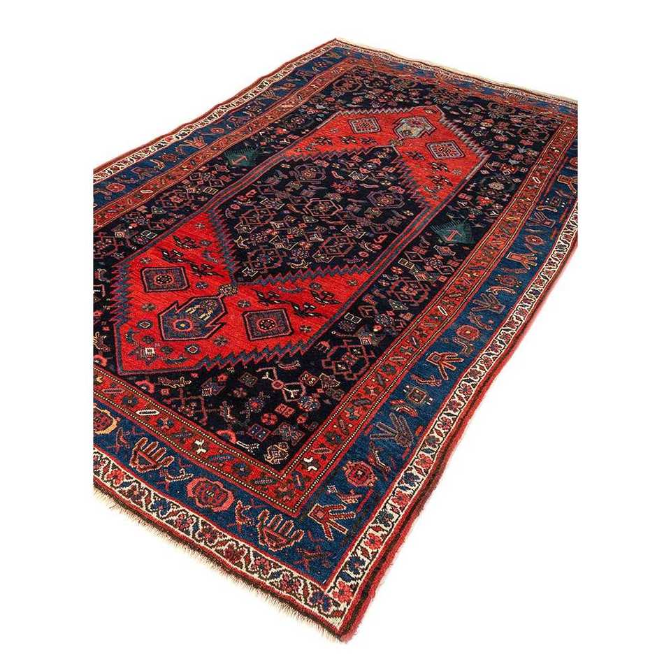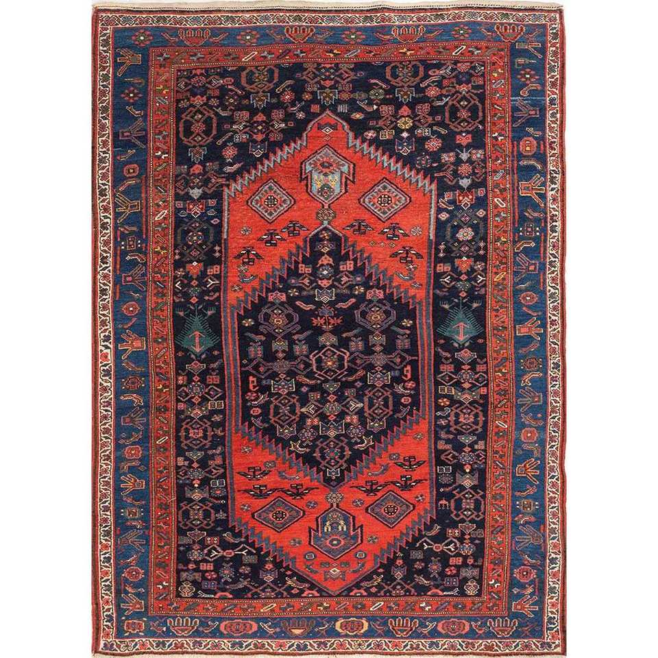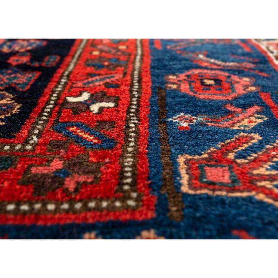พรมขนสัตว์ถักมือสีน้ำเงิน Aalam รุ่น Paem-523 สำหรับตกแต่งห้องนั่งเล่นในบ้าน พร้อมลวดลายรูปทรงสี่เหลี่ยมผืนผ้าแบบเมดัลเลียน