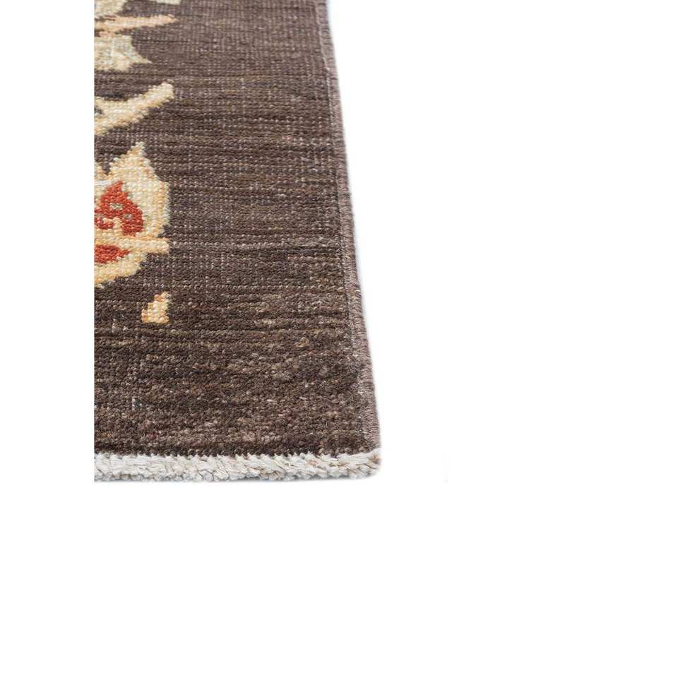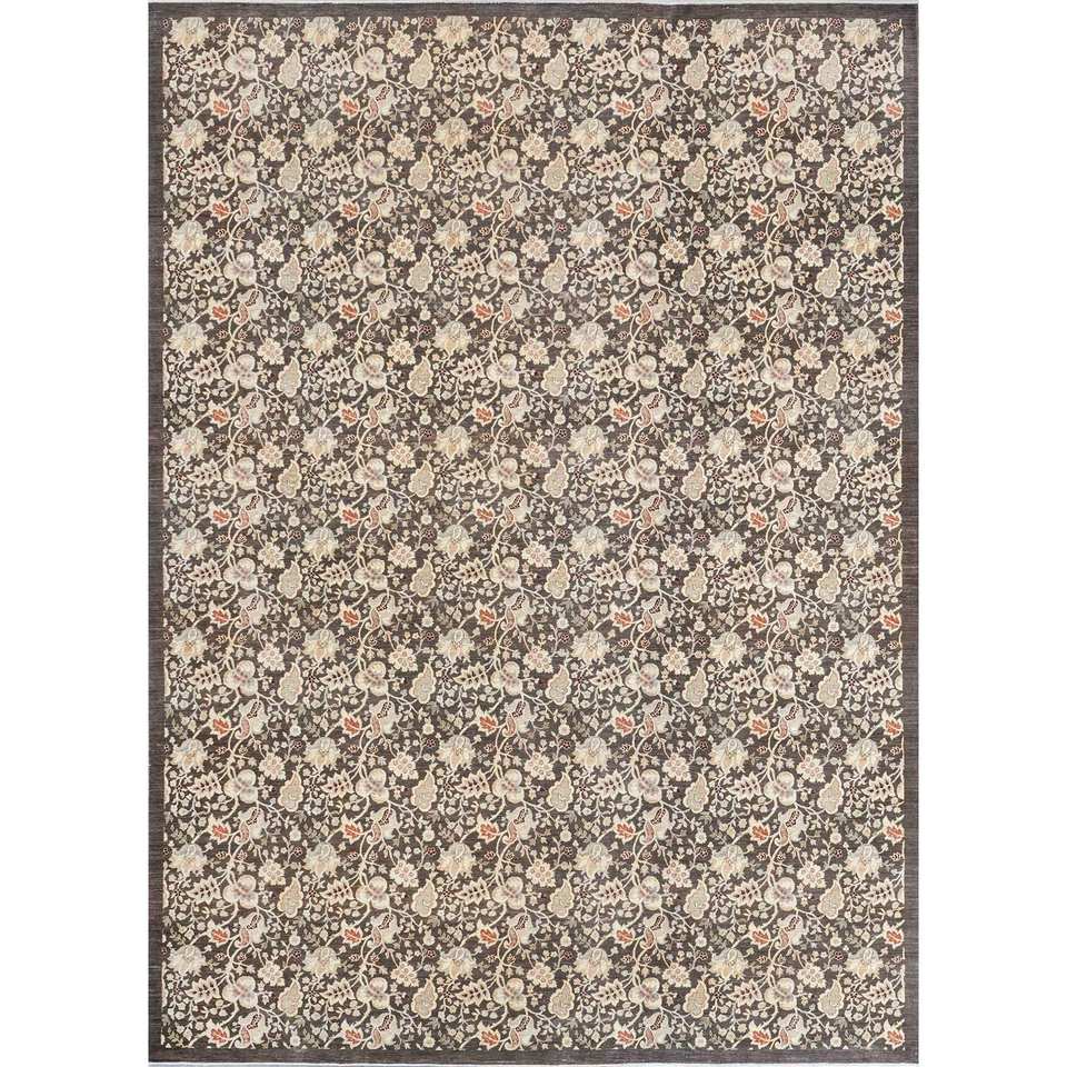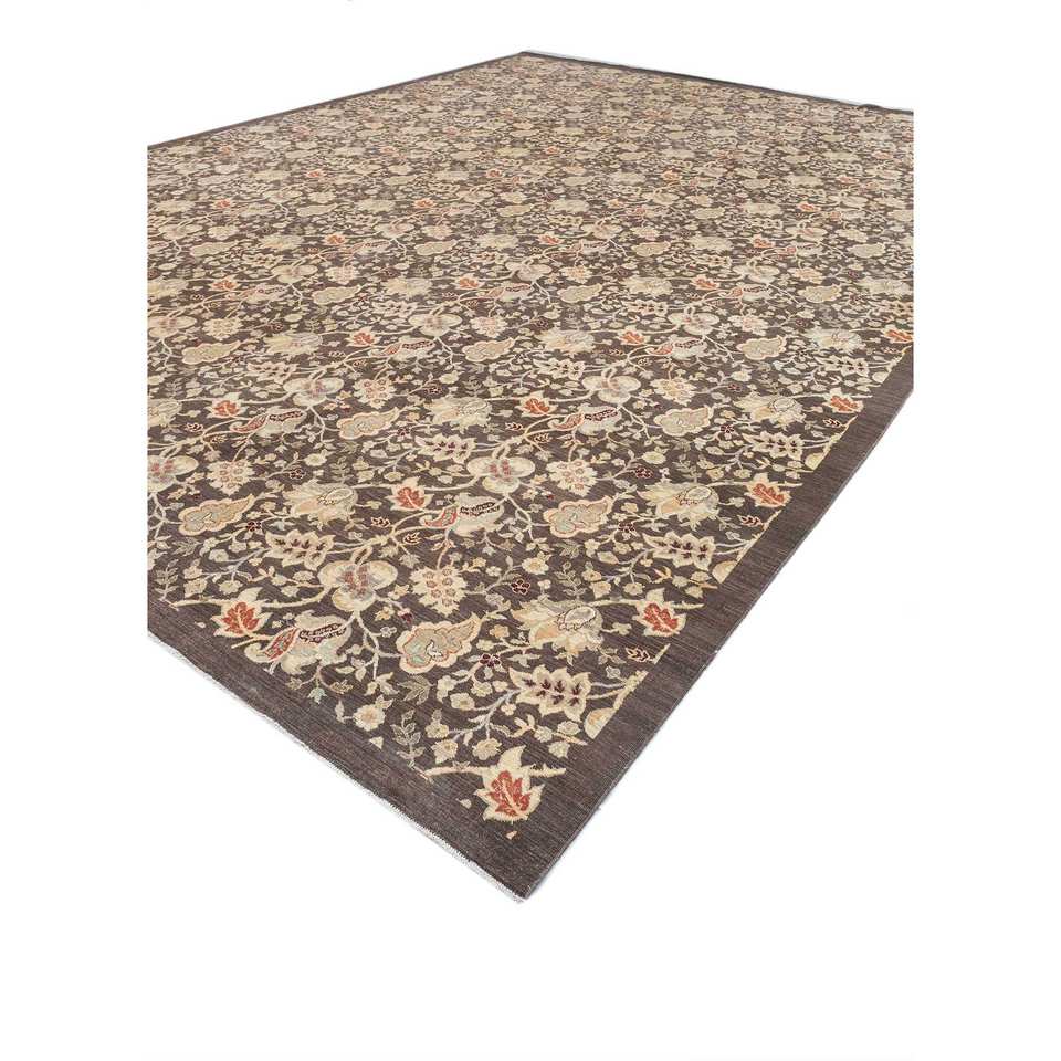 พรมขนสัตว์ถักมือ Aalam สีเบจ-น้ำตาล ลายดอกไม้สไตล์โบโฮ ขนาด 9x12 ฟุต รูปทรงสี่เหลี่ยมผืนผ้า สำหรับห้องนั่งเล่นหรือทางเดิน ความหนา 10 มม. รุ่น Pae-5887