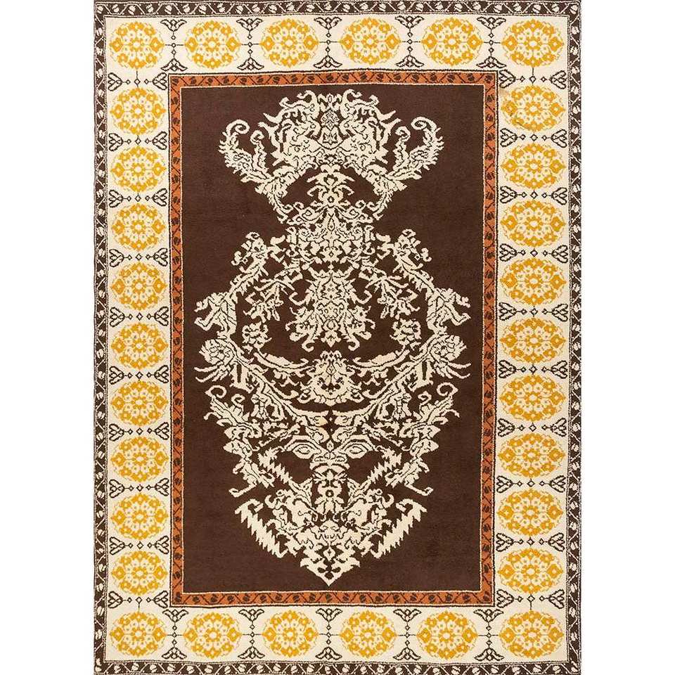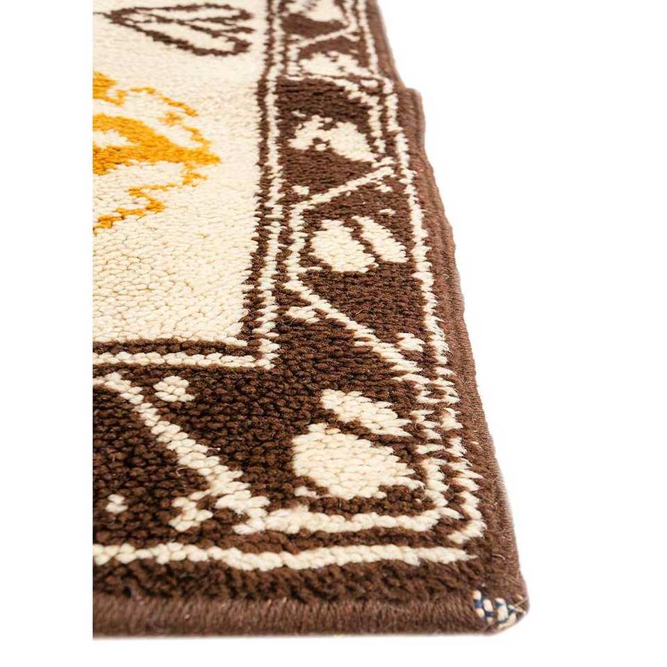พรมขนสัตว์ถักมือลายเหรียญสีเบจและสีน้ำตาลขนาดใหญ่สำหรับตกแต่งห้องนั่งเล่นวัยรุ่น ใช้ในห้องโถง-Paem-457