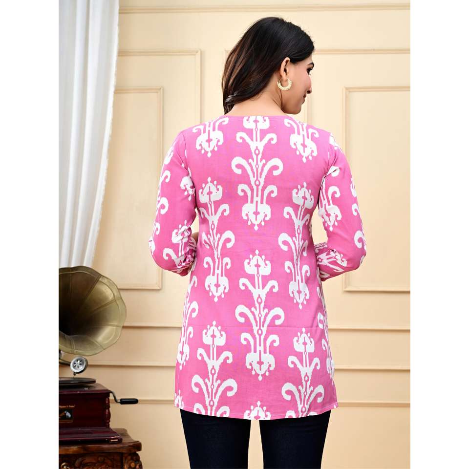 เสื้อคุर्ตาผู้หญิงสไตล์ลำลองจาก Aarti Fashion ผ้าทอ แขนสามส่วน คอทรงโอ พิมพ์ลาย ระบายอากาศได้ดี สไตล์เรียบง่าย เหมาะสำหรับใส่ทุกวัน
