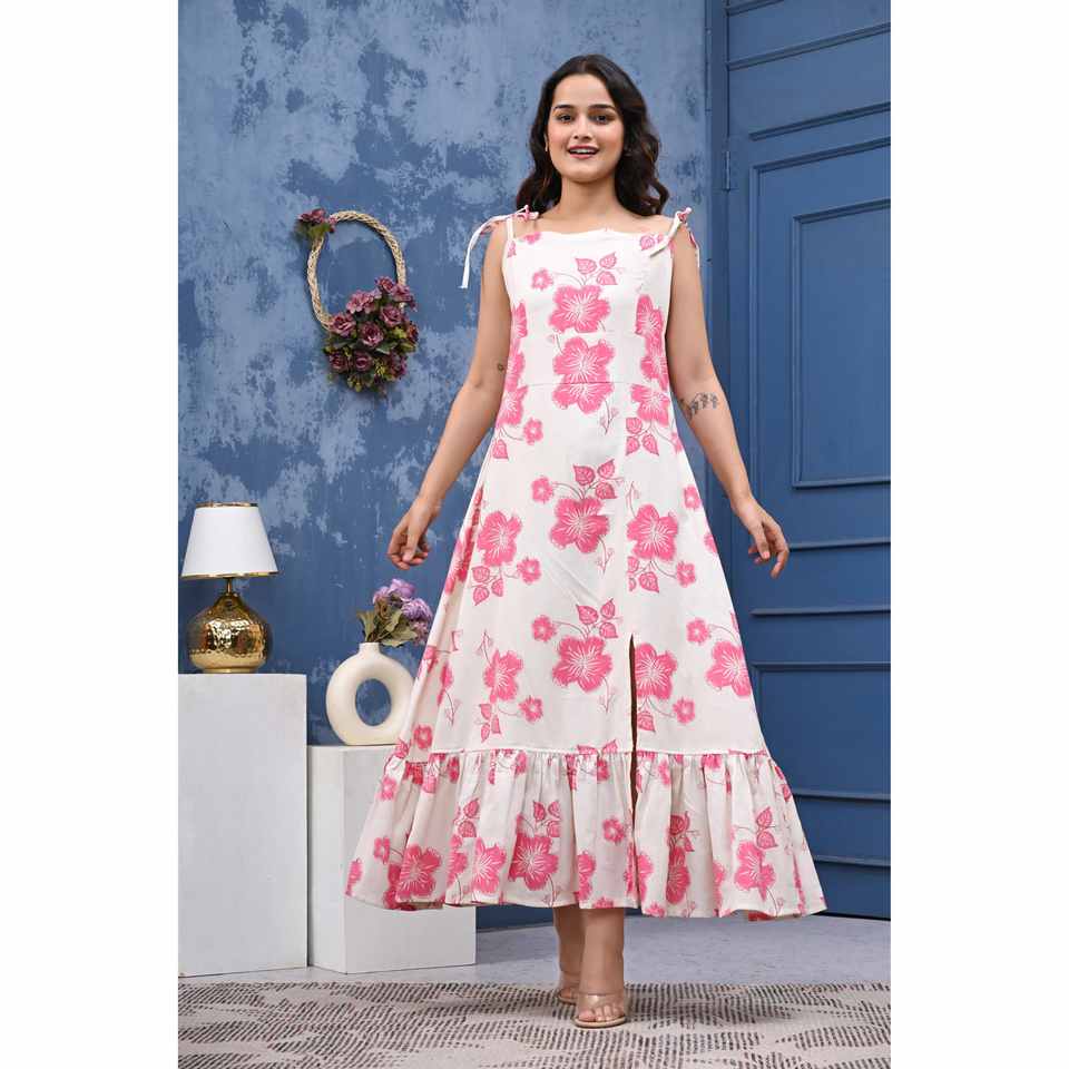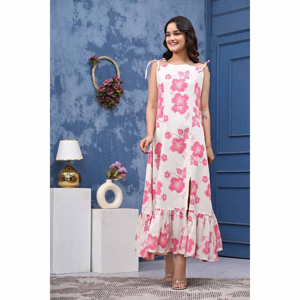 ชุดว่ายน้ำวันพีซผ้าฝ้าย 100% พิมพ์ลายดอกไม้สุดหรู สีขาวและชมพู สำหรับผู้หญิงจาก Aarti Fashion