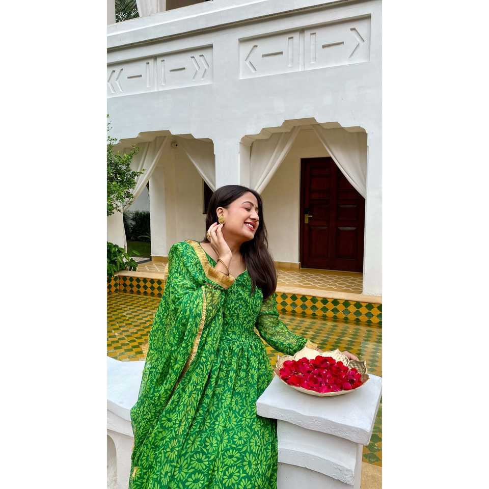 Aarya XS Size Chiffon Green Suit Set