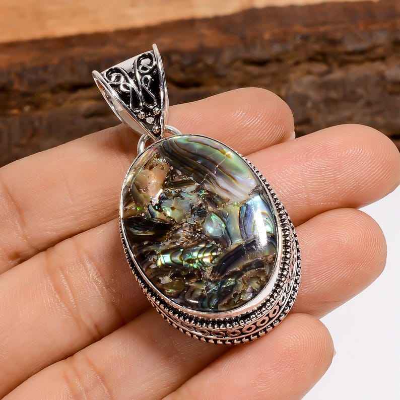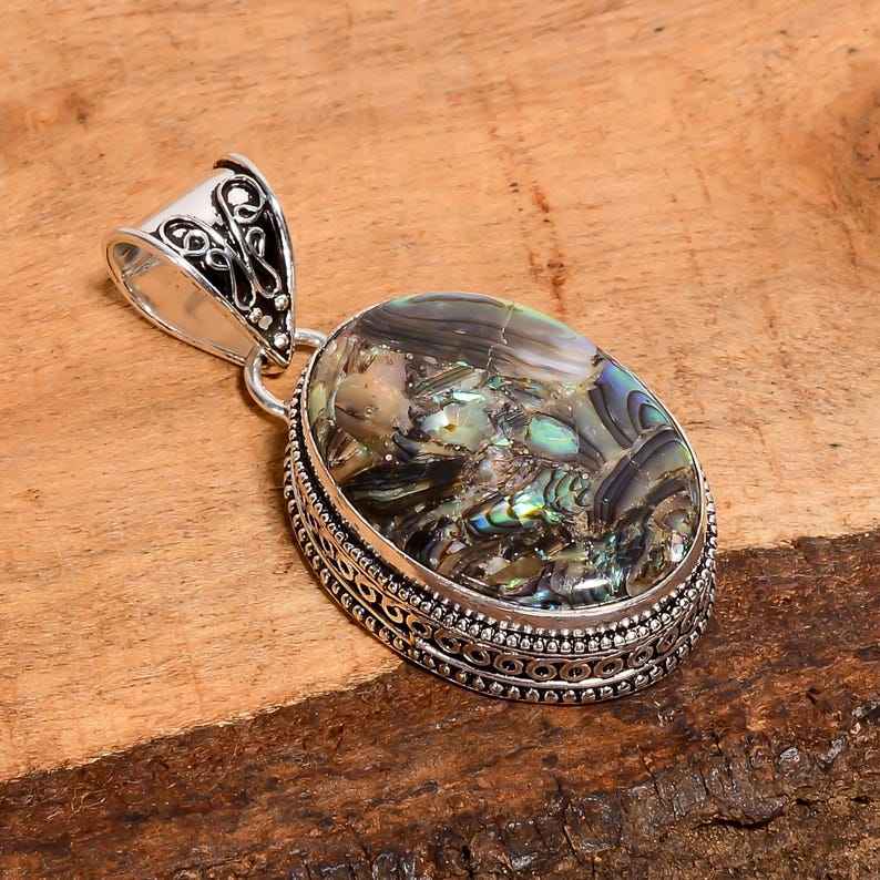 จี้เปลือกหอยเป๋าฮื้อ ประดับด้วยหินเปลือกหอยเป๋าฮื้อแวววาว