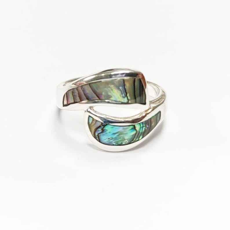 แหวนเปลือกหอยเป๋าฮื้อเงินแท้ แหวนลายคลื่นประดับมุก เครื่องประดับแฟชั่นสวยเก๋ไม่ซ้ำใครสำหรับผู้หญิง