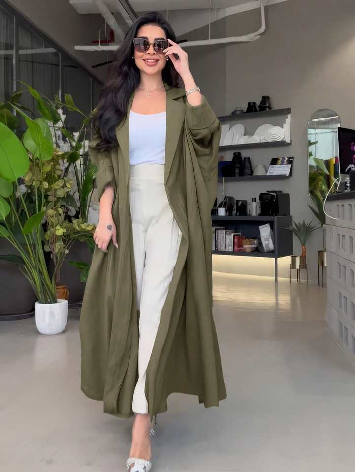 ชุดอาบายะแบบกิโมโนสำหรับชาวมุสลิม ตุรกี ดูไบ อิสลาม เสื้อคลุมแบบคาฟตัน กระดุมทรงเห็ด แขนเสื้อแบบมีช่องสำหรับใส่ของ ชุดอาบายะแบบเปิดเรียบร้อย