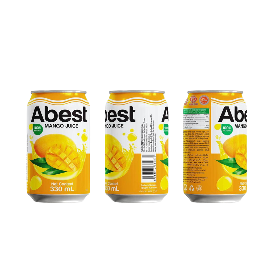 กระป๋องน้ำผลไม้ abest 330มล. เครื่องดื่มเวียดนามรสหวานมะม่วงสดส่วนผสมที่เป็นเอกลักษณ์เฉพาะในเวียดนาม