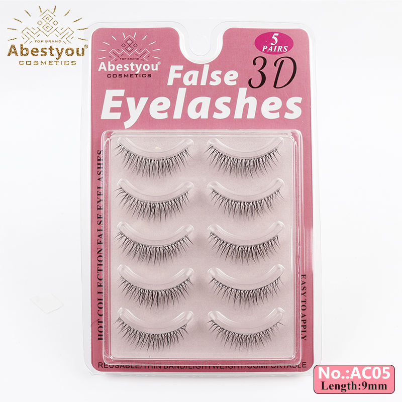 Abestyou ขนตาปลอม9มม. 9คู่,ขนตาปลอมแบบโปร่งใสทำจากธรรมชาติบริสุทธิ์สำหรับแต่งหน้าย่อหน้าสั้น