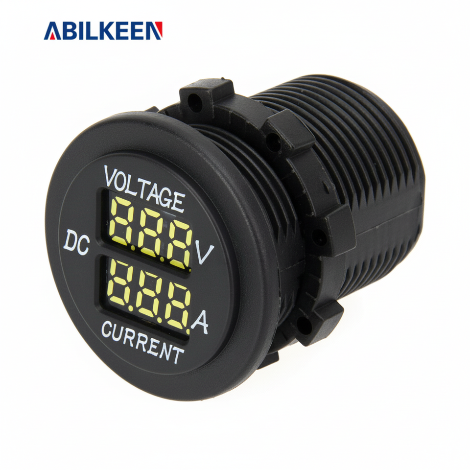 อะบิลคีน ดิจิตอลโวลต์มิเตอร์คู่ 12V DC เครื่องวัดแรงดันไฟฟ้าและกระแสไฟฟ้า จอแสดงผล LED IP65 เครื่องตรวจสอบแบตเตอรี่รถยนต์ วัสดุ ABS