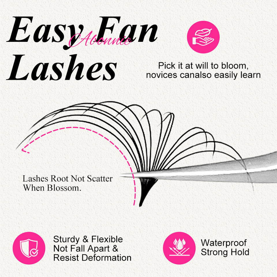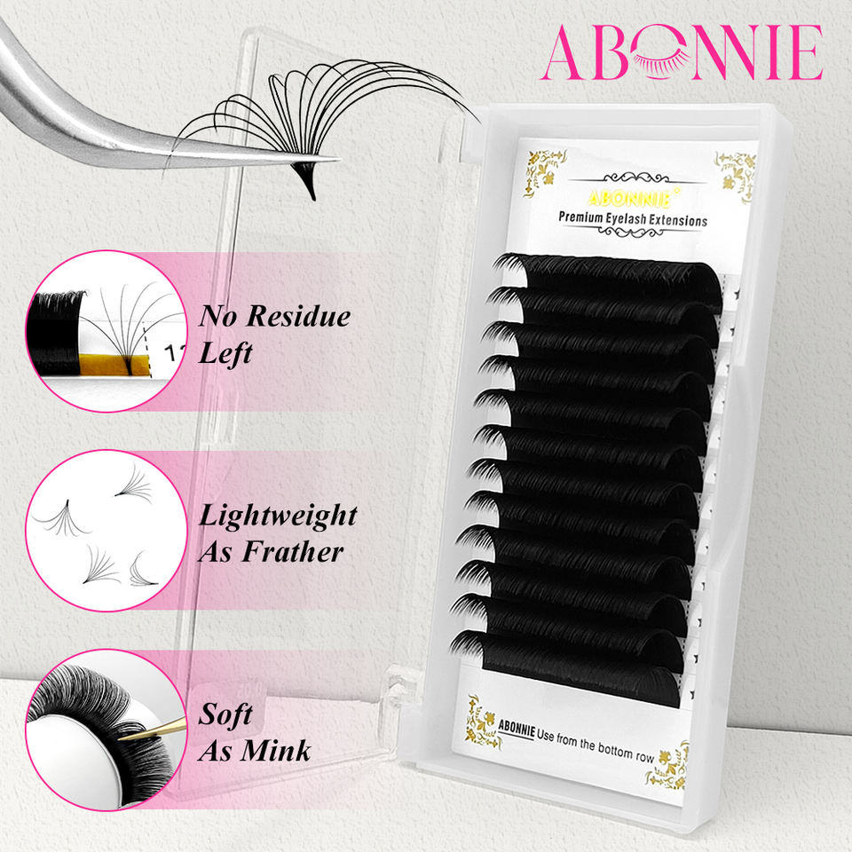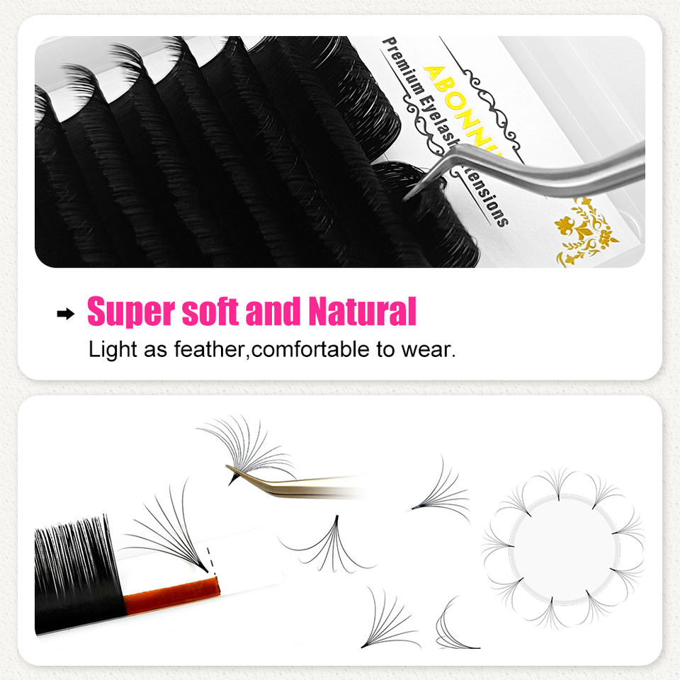 ขนตาปลอม Abonnie Silk Volume Easy Fan แบบกำมะหยี่ สำหรับต่อขนตาแบบพัด ขายส่ง ถาดขนตาแบบกำมะหยี่ วัสดุอุปกรณ์ต่อขนตาแบบกำหนดเอง