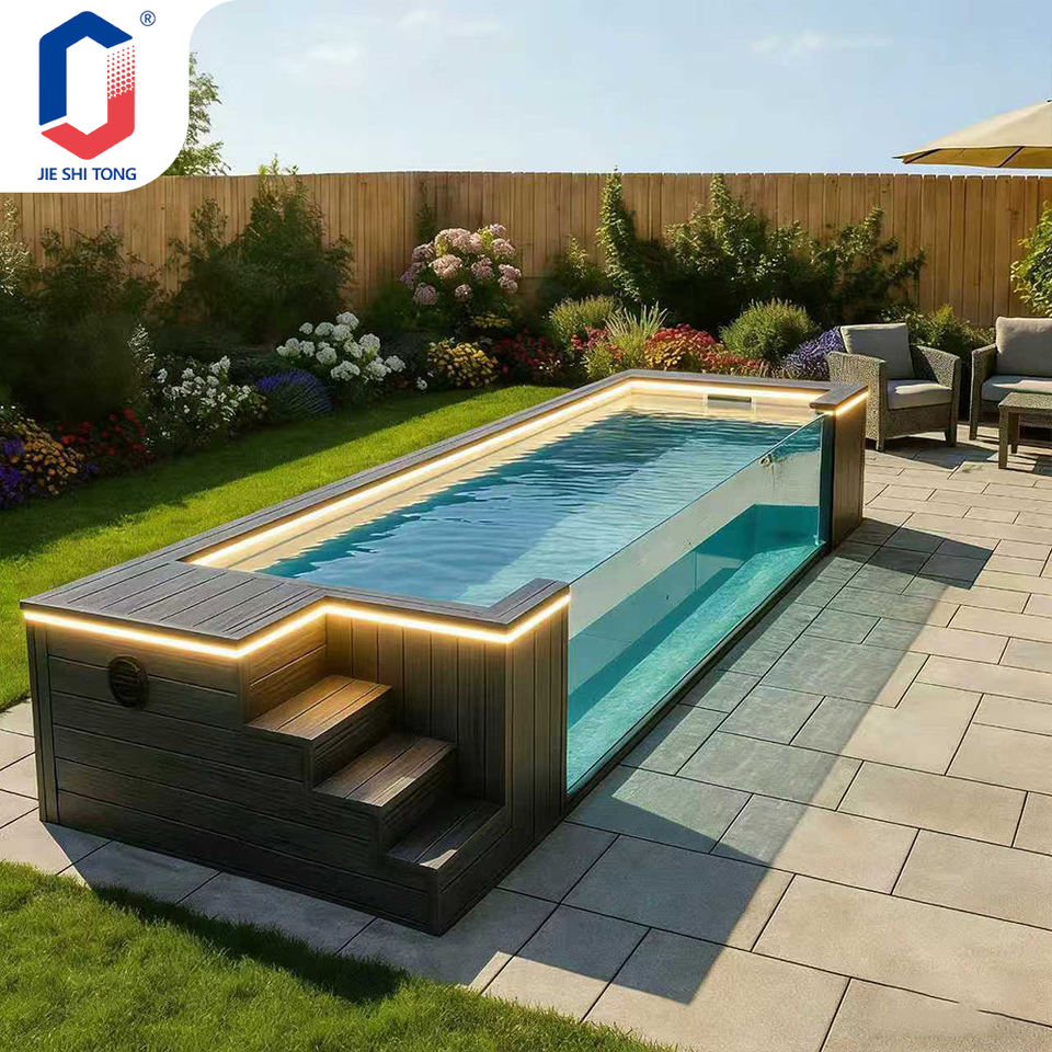 สระว่ายน้ำไฟเบอร์กลาสเหนือพื้นดิน หนา 10 มม. ทนรังสียูวี เป็นมิตรกับสิ่งแวดล้อม ทนทาน รูปทรงสี่เหลี่ยมผืนผ้า ติดตั้งง่าย พร้อมบันไดนิรภัยสำหรับเด็ก