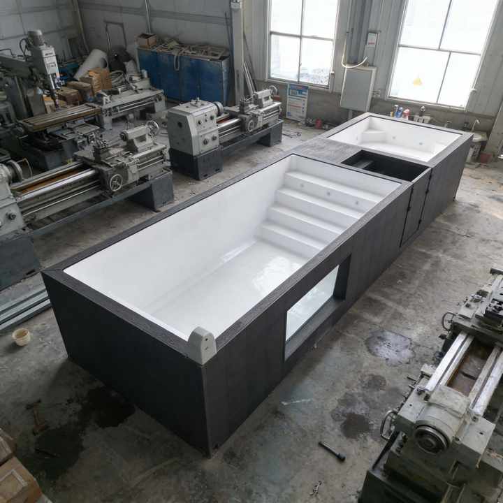 สระว่ายน้ำกลางแจ้งทรงสี่เหลี่ยมแบบตั้งพื้น สำหรับเด็ก วัสดุไฟเบอร์กลาส ปรับแต่งสีและความหนาได้