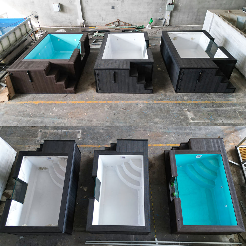 สระว่ายน้ำโมเดิร์นเหนือพื้นดิน ขนาดเล็ก ขนาดใหญ่ กระเบื้องโมเสค ปิสซินา สำหรับครอบครัว ไฟเบอร์กลาส สระว่ายน้ำสำเร็จรูปในสวน แบบตู้คอนเทนเนอร์