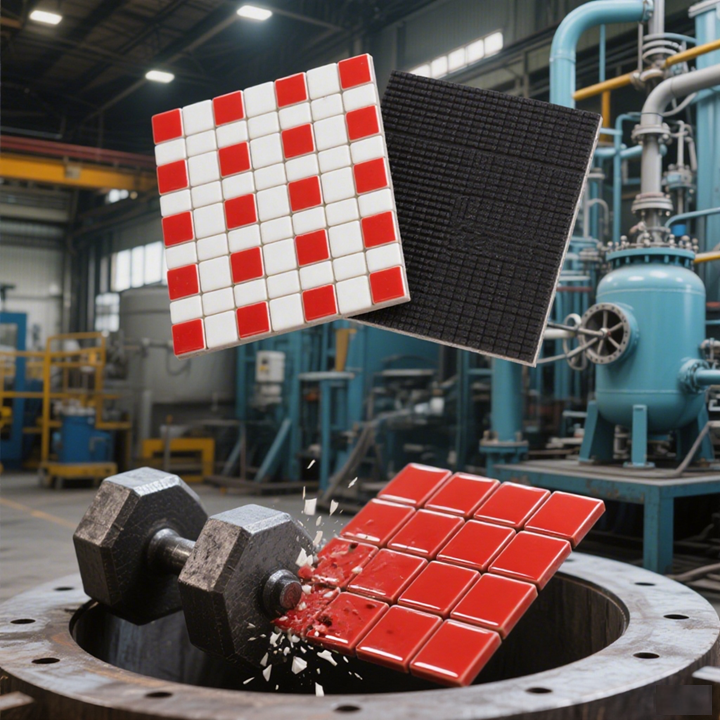แผ่นรองยางอลูมินาเซรามิกทนทานต่อการขัดถูสำหรับทำเหมืองรางแร่ป้องกันการกระแทกทนทานต่อการสึกหรอ