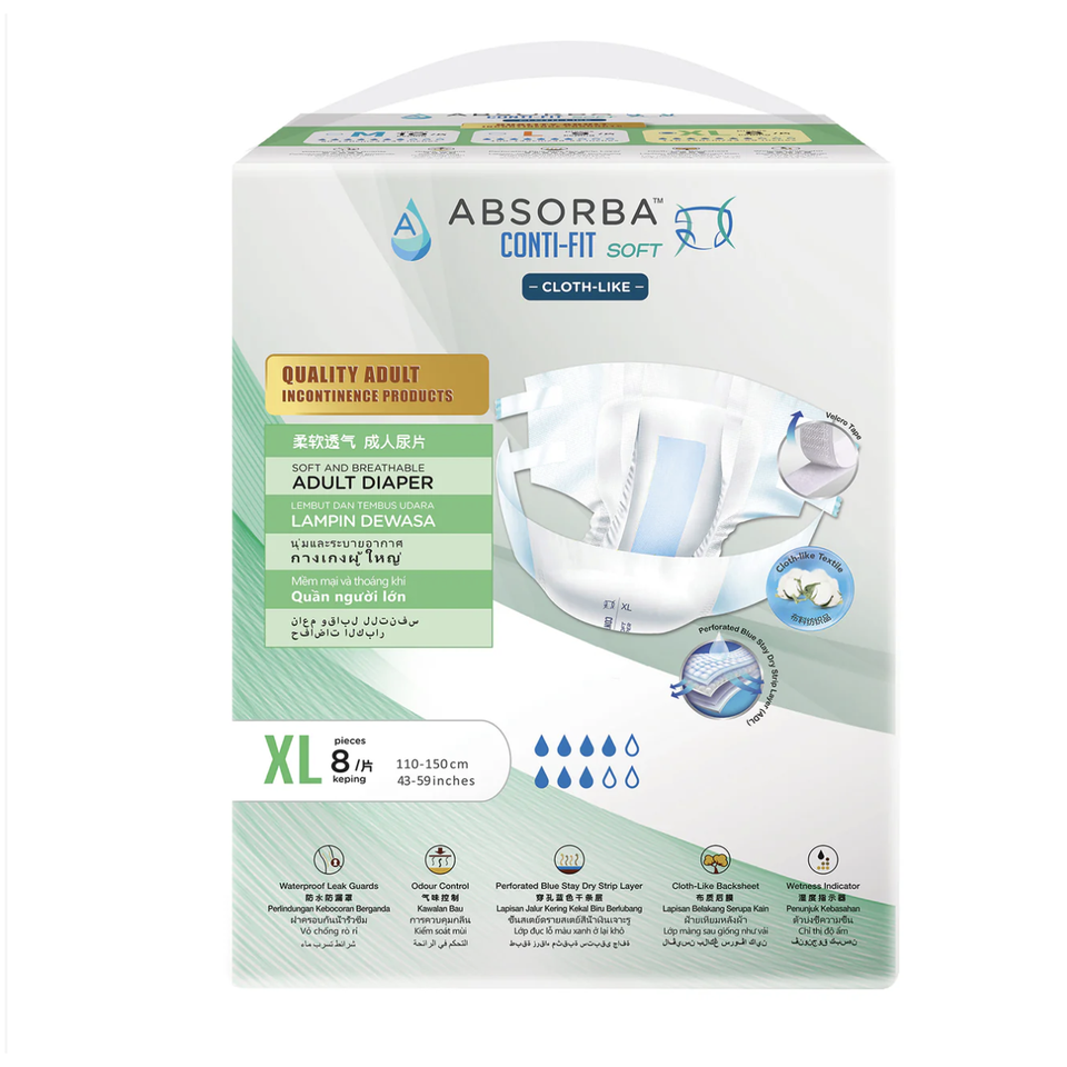 ผ้าอ้อมผู้ใหญ่ Absorba Conti-Fit Soft (ขนาดใหญ่พิเศษ - 8 ชิ้นต่อแพ็ค)