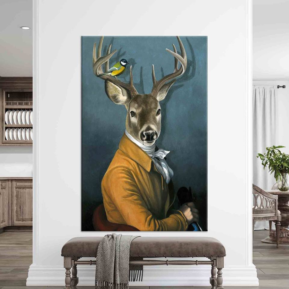 ภาพพิมพ์บนผ้าใบลายกวางแบบนามธรรม: งานศิลปะตกแต่งผนังสุดหรูในธีมอาณาจักรสัตว์, ห่อหุ้มอย่างดี