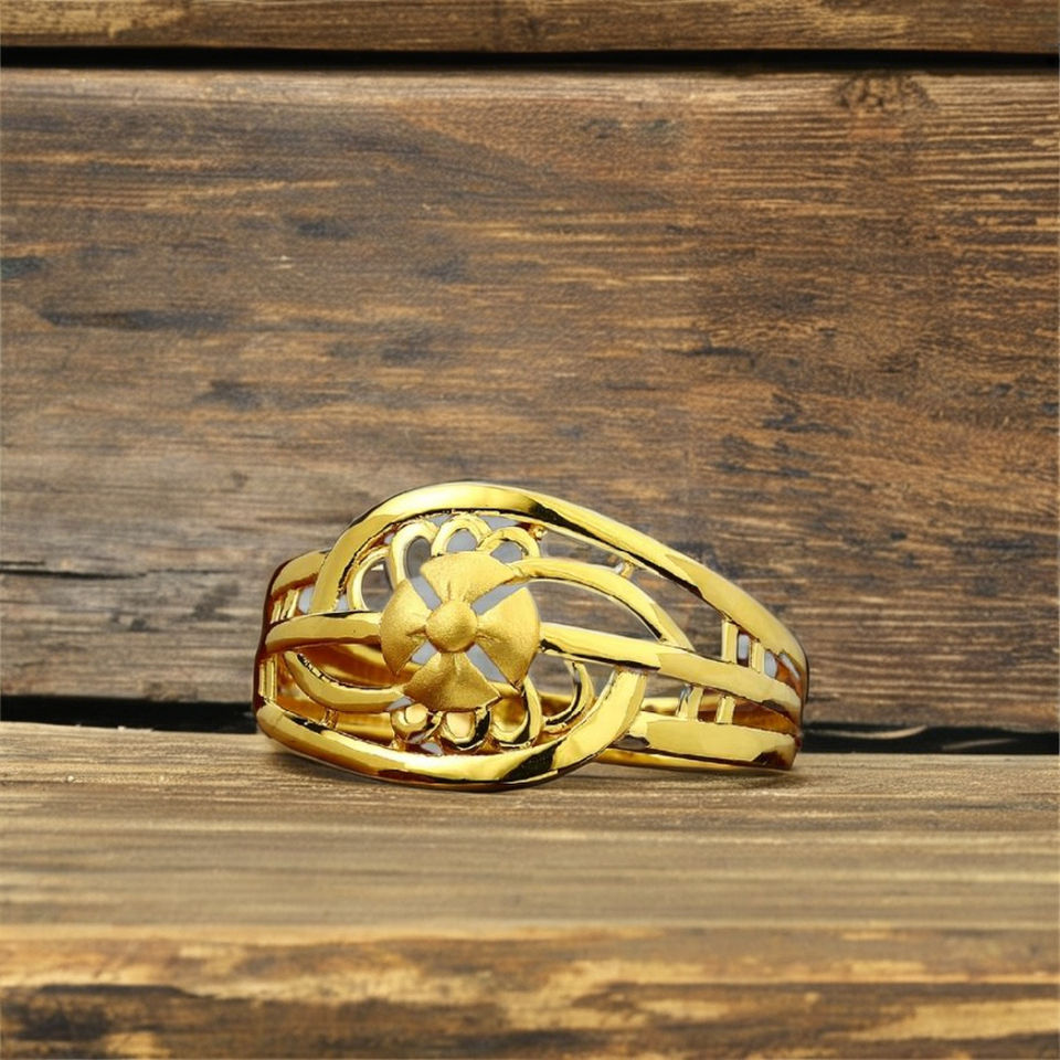 แหวนทองรูปดอกไม้แบบนามธรรม | ดีไซน์หกกลีบพร้อมลวดลายสลักที่ดูคลื่นไหล | เครื่องประดับสวมใส่ประจำวัน น้ำหนัก 2.320 กรัม ดีไซน์ทันสมัย